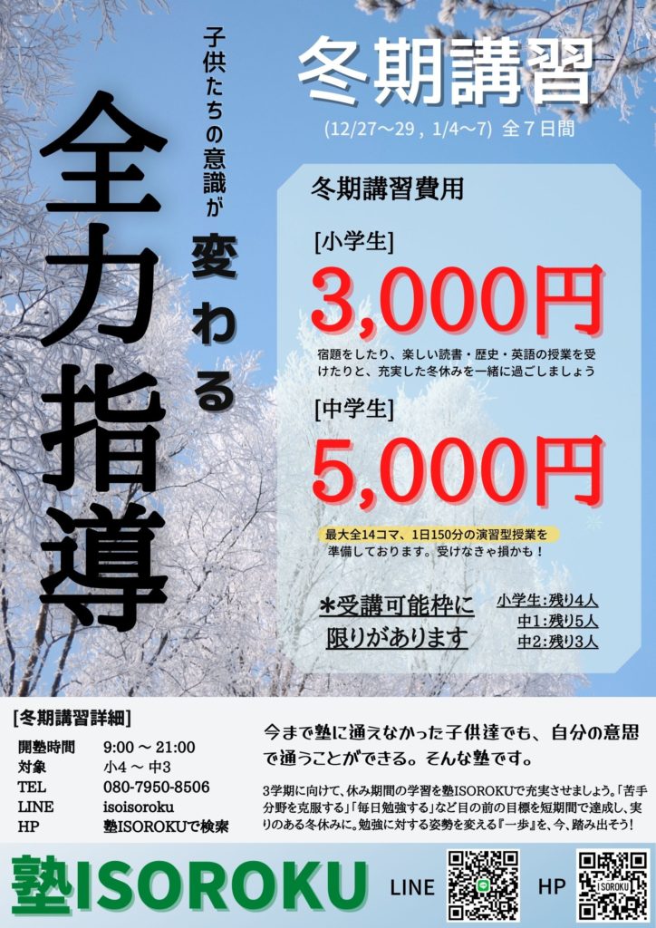 塾ISOROKU冬期講習のご案内です。